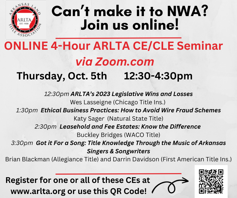 ONLINE 4-Hour ARLTA CE/CLE Seminar via Zoom.com Arcstone Support August 26, 2024 Share Previous PostNext Post